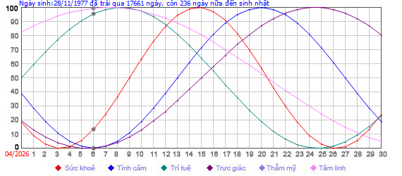 Chu kỳ sinh học của ngày sinh: 28/11/1977 Xem ngày âm lịch